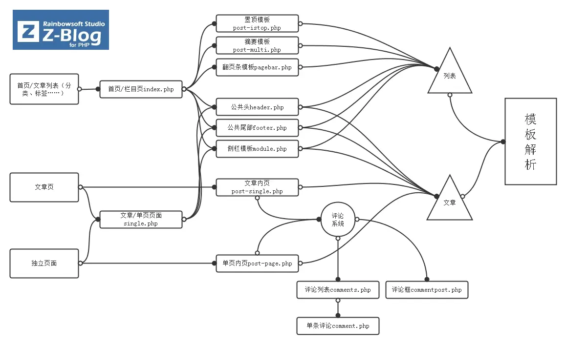 theme 目录下 template 文件夹是专门放置模板文件的。compile文件夹是存放经过程序编译的模板文件,请尽量不要去修改。如果改动了模板文件,则需要重新编译模板才能看到改动效果。你可以在后台首页找到[清空缓存并重新编译模板]或重新激活主题刷新编译模板文件。模板文件组成以下为常用模板文件,对于Z-BlogPHP来说模板文件并不是必须的,你可以利用...