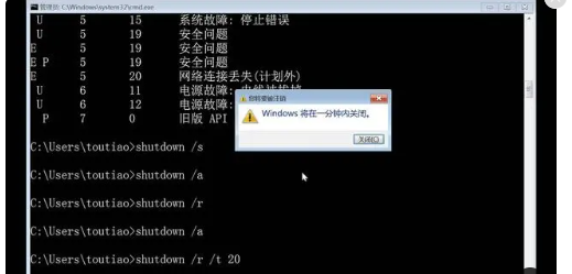 shutdown -s -t 20