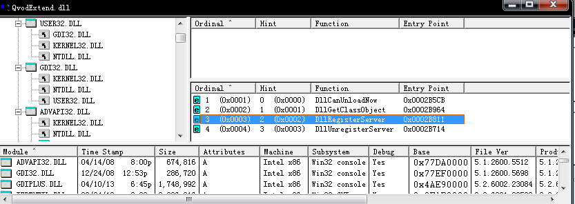 1.先看看QvodExtend.dll, QvodWebBase.dll都导出了些什么函数