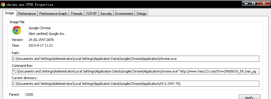 查看chrome.exe的主进程信息如下,亮点就在下图中。